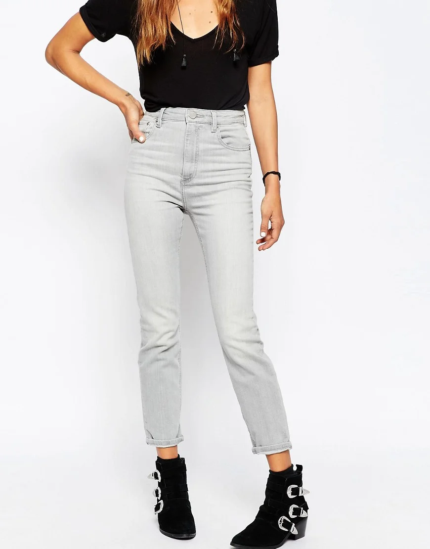 Thank you to: ASOS Farleigh High Waist Slim Mom Jeans In Smokey Falls Grey Wash.